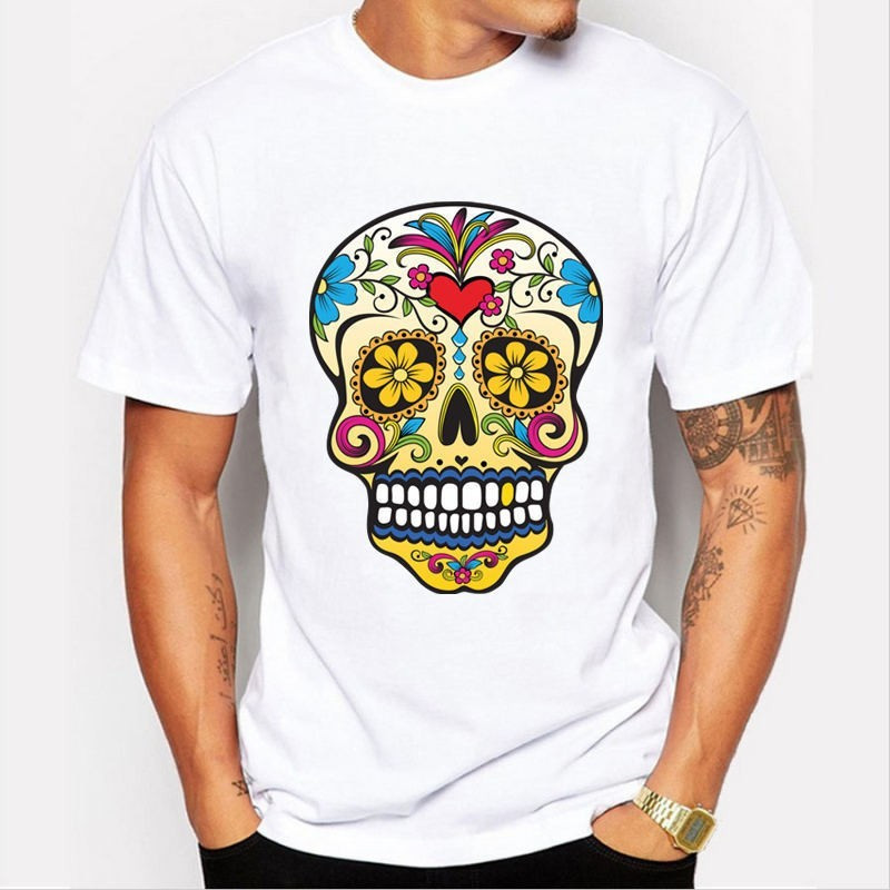 Mens gold tooth floral sugar skull t-shirt Harajuku funny tee shirts Hipster O-neck cool tops