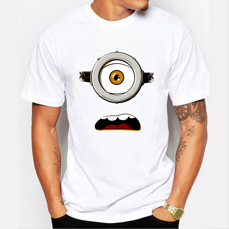 Mens fashion funny design simple one eye minion printed t-shirt cute tee shirts Hipster O-neck cool tops